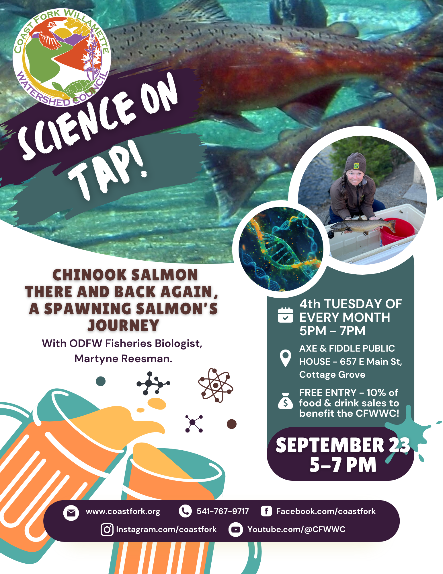 September 23, 2025 @ 5:00 pm – 7:00 pm – Science on Tap is taking the month of August off, but we will be back with more great presentations from September – November! Science on Tap is gonna take another quick summer break in August, but don’t worry, we have the marvelous Martyne Reesman, a fisheries biologist with the Oregon Department of Fish and […]