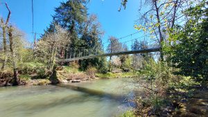 Join us from 10am to 2pm on Saturday, April 19th for our next volunteer work party. This month we’ll be at the J. Polk Currin Swinging Bridge, between Madison Ave and South River Road, working to remove invasive English ivy and Himalayan blackberries. Contact nayla@coastfork.org to RSVP or for more information.