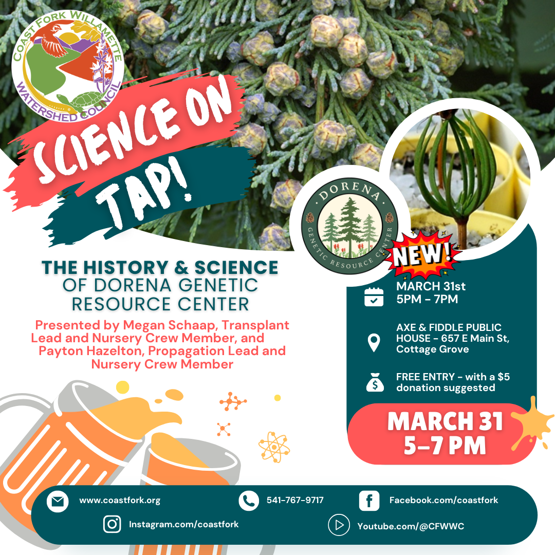 USFS Road Decommissioning Project Slide 1Coming Soon!Stay tuned for updates on this projectSlide 1Coming Soon!Stay tuned for updates on this project Taylor stuff coming soon. KEEP IN TOUCH: Join our newsletter to receive updates and event notifications. UPCOMING EVENTS Bikes to Blooms – May 9th Coast Fork Staff May 9, 2026 Get ready for the 10th annual Bikes to Blooms wildflower event, on Saturday, May 9th. This year, Bikes to Blooms… Read more March Science on Tap Coast Fork Staff March 31, 2026 Rescheduled! Join us on Tuesday, March 31st for another great Science on Tap Event! We’ll be welcoming Megan Schaap, Transplant… Read more